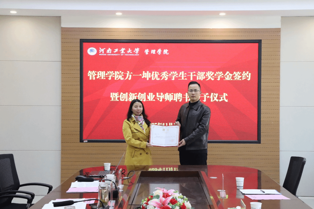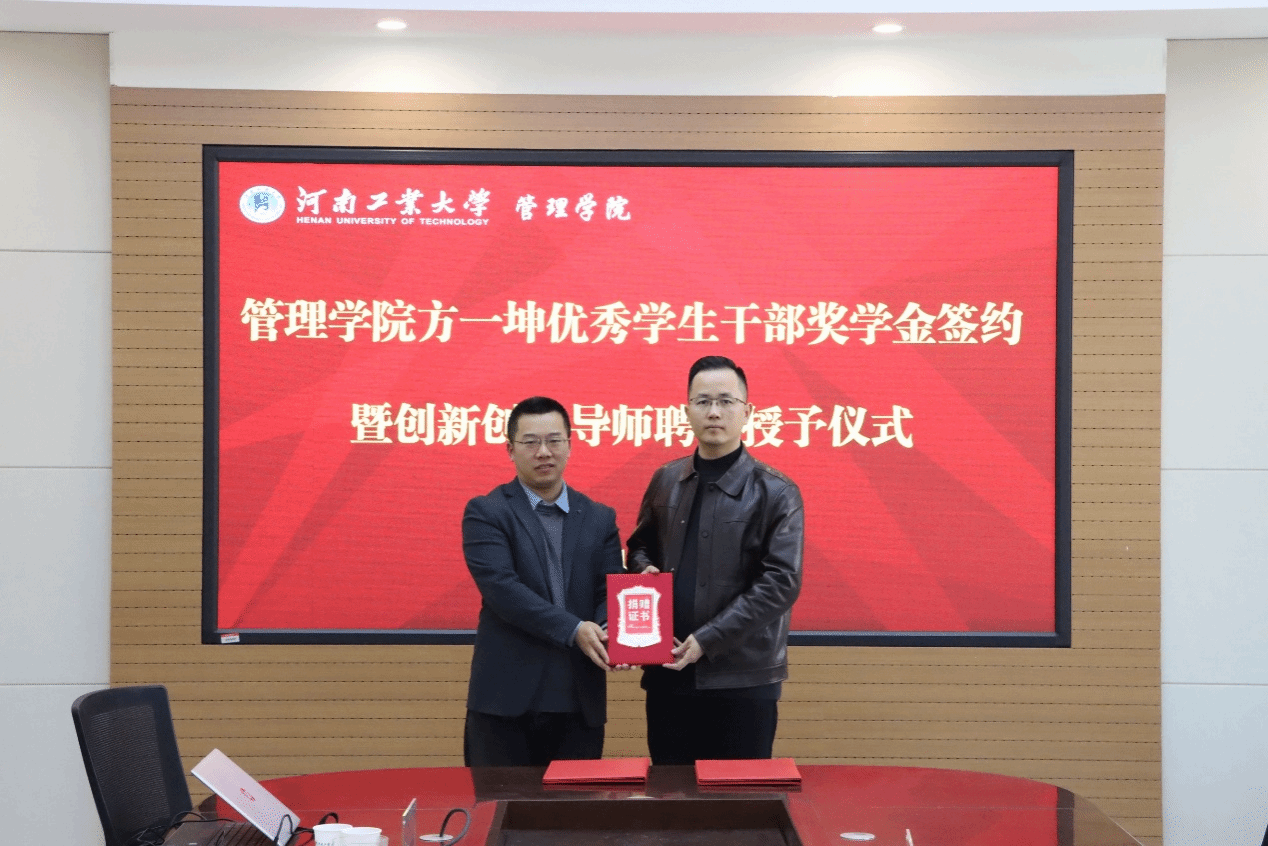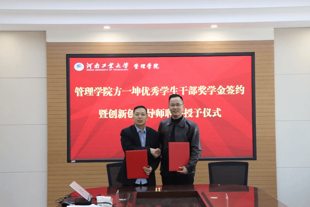 “方一坤优秀学生干部奖学金”签约暨创新创业导师聘任仪式在博识楼3558会议室举行。方一坤集团总裁宋东方、人力资源部行政经理郑雪、新媒体运营部经理郭子恺,捷报足球比分