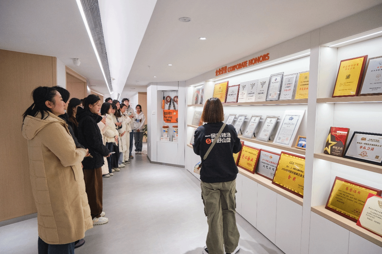 活动伊始,人力资源部总监李冬冬带领学生参观集团办公区,结合文化墙系统讲解企业发展历程、品牌理念、团队建设及荣誉成就。在随后的分享环节,创始人、餐饮总经理金少坤讲述了品牌从创立到深耕中原餐饮标杆的创业故事,他特别强调“学习力与持续力”的重要性,分享“复杂事简单化、简单事重复做”的创业心得。人力资源部行政经理郑雪详细讲解了企业发展全貌,重点阐释“讲原则、有敬畏、顾大局、懂感恩、思进取、敢担当”的核心价值观,以及“体力、心力、愿力、真诚”的团队文化,并介绍企业通过月度主题活动践行捷报足球比分的实践举措。在方一坤旗舰门店体验环节中,新媒体运营经理郭子恺带领学生沉浸式观察运营流程、服务标准与消费场景,学生们一边品尝门店美食,一边围绕实际问题积极提问探讨。
