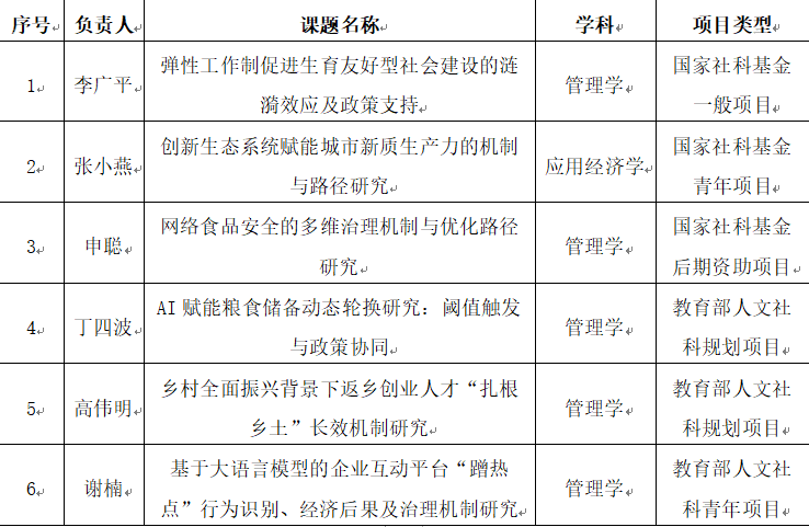 在2025年度国家级项目申报中再次取得好成绩,共获批6项国家级项目,其中国家社会科学基金项目3项,教育部人文社会科学研究一般项目3项,具体立项情况如下: