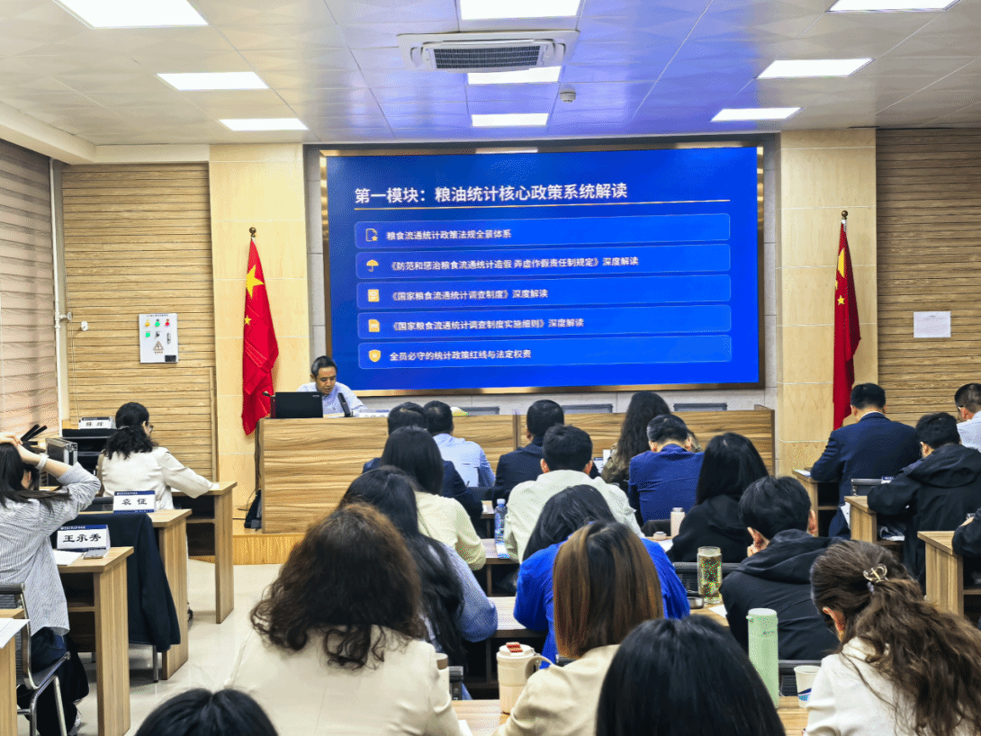 本次讲座以“严守统计法治底线,夯实粮油统计与财务业务基础”为主题,紧扣粮食执法监管核心需求。袁晓波结合财会专业优势与粮食行业研究积累,围绕统计政策、业务实操规范、配套财务基础、风险防控与案例警示四大模块进行系统讲解。授课内容兼具政策权威性与实操针对性,获得参训人员高度评价。