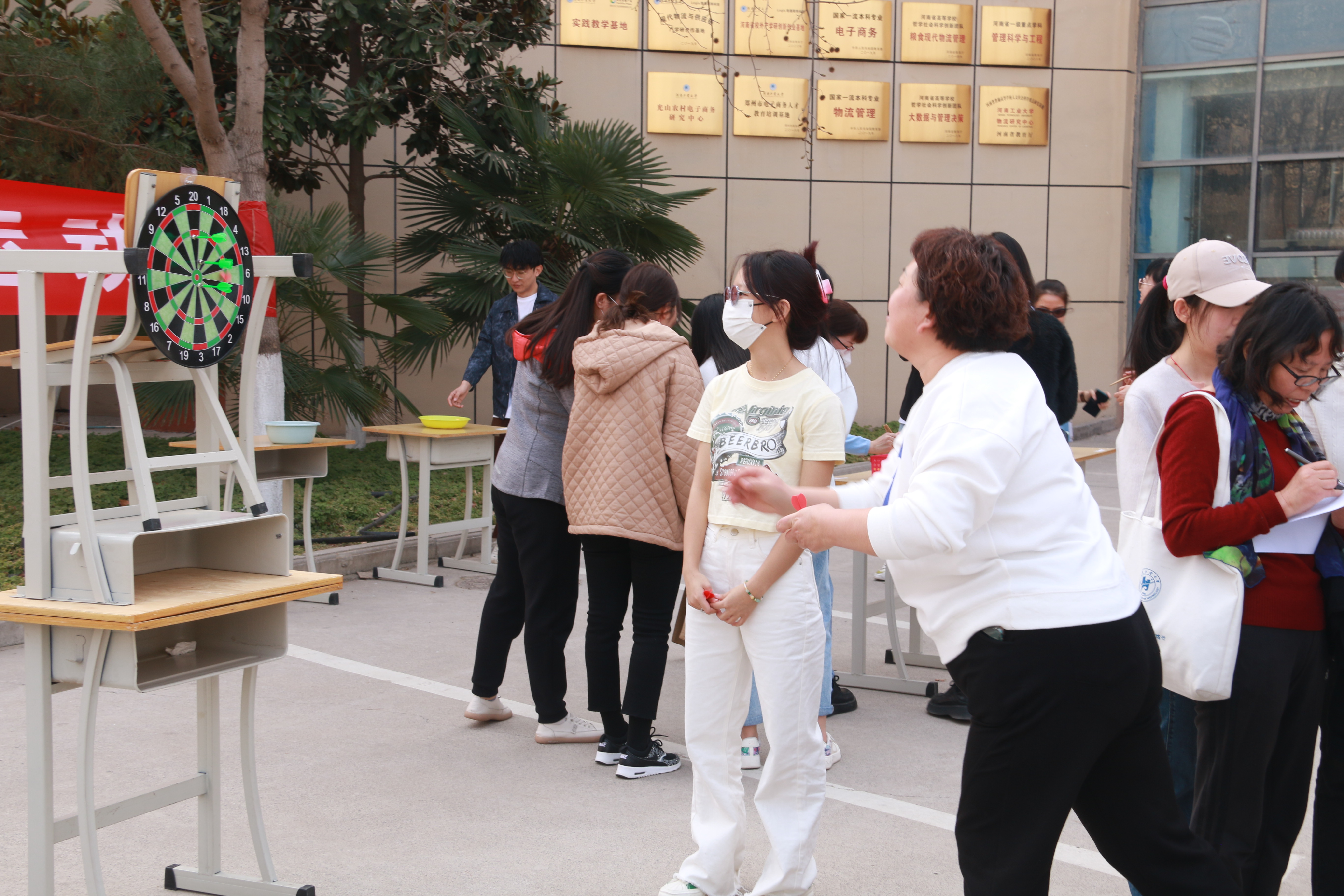 趣味运动会共有夹乒乓球、飞镖和踢毽子等项目,集趣味性、娱乐性和协作性于一体。在各项活动中,老师们精神饱满、奋力争先,有的老师用筷子夹起乒乓球并迅速运球至另外的空盆中,在规定时间内以最快的速度获得好成绩;有的老师步伐矫健、身轻如燕,将毽子轻轻一抛,毽子就像弹簧一样在不停的跳跃,在脚上弹出又弹回,引起众人的阵阵喝彩;有的老师跨步向前,手臂猛摔,手腕轻弹,鲜艳的飞镖“嗖”的朝着靶飞去,大家你五镖,我五镖,兴奋快乐洋溢在每位老师脸上,展现了新学期老师们蓬勃向上、奋发团结的精神面貌。
