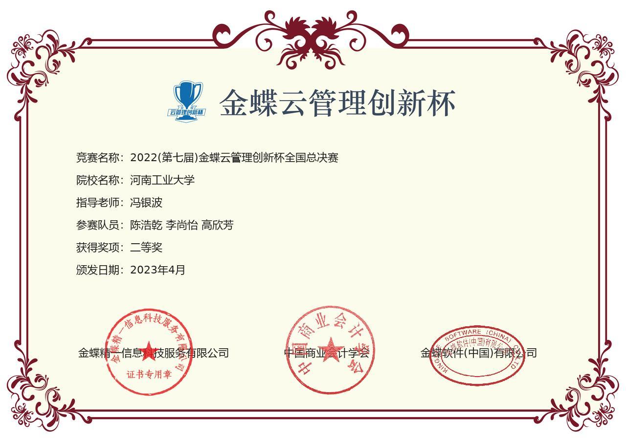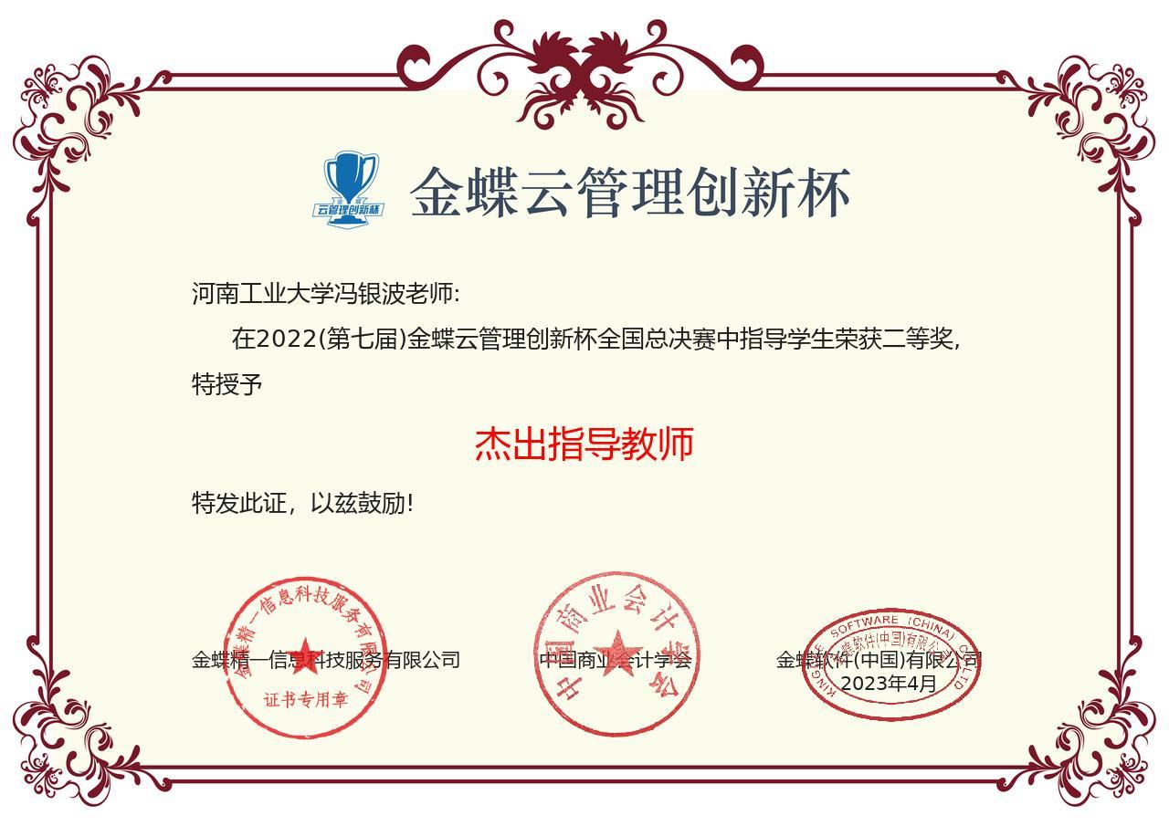 冯银波老师指导的3个团队分别获得区域赛一等奖1项、二等奖2项,冯银波老师获得区域赛“优秀指导教师”称号。其中,由学生陈浩乾、李尚怡、高欣芳组成的团队以区域赛第三名的成绩晋级全国总决赛并荣获总决赛二等奖,冯银波老师获得全国总决赛“杰出指导教师”称号。