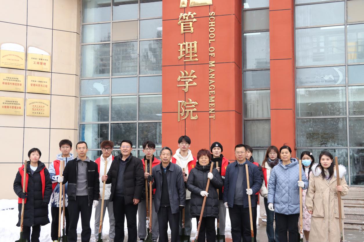 师生党员在3号楼及其周边道路开展清雪活动,保障师生安全出行。