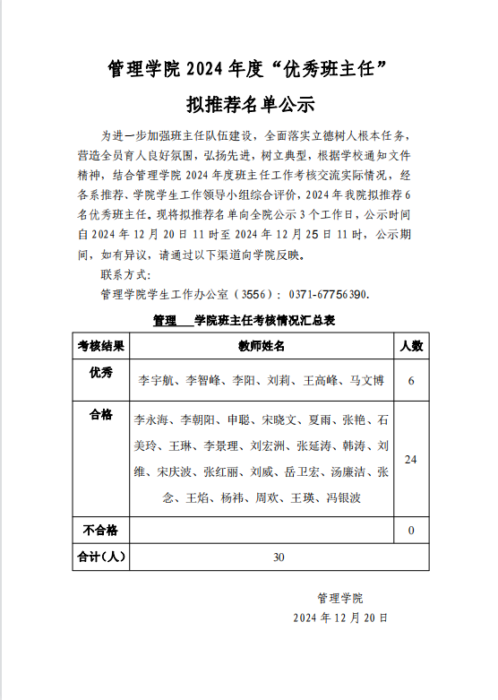 捷报足球比分 2024年度“优秀班主任” 拟推荐名单公示