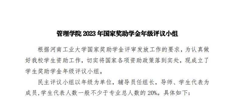 捷报足球比分 2023年国家奖助学金年级评议小组