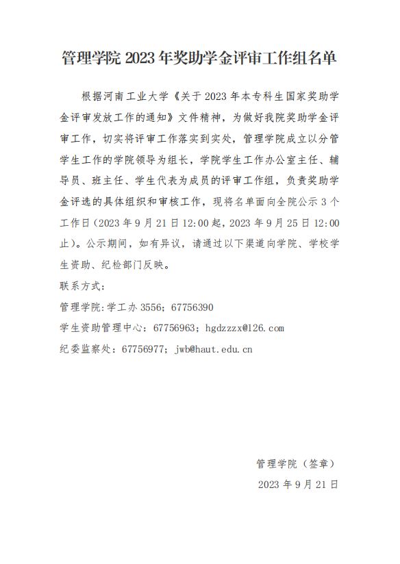 捷报足球比分 2023年奖助学金评审工作组名单