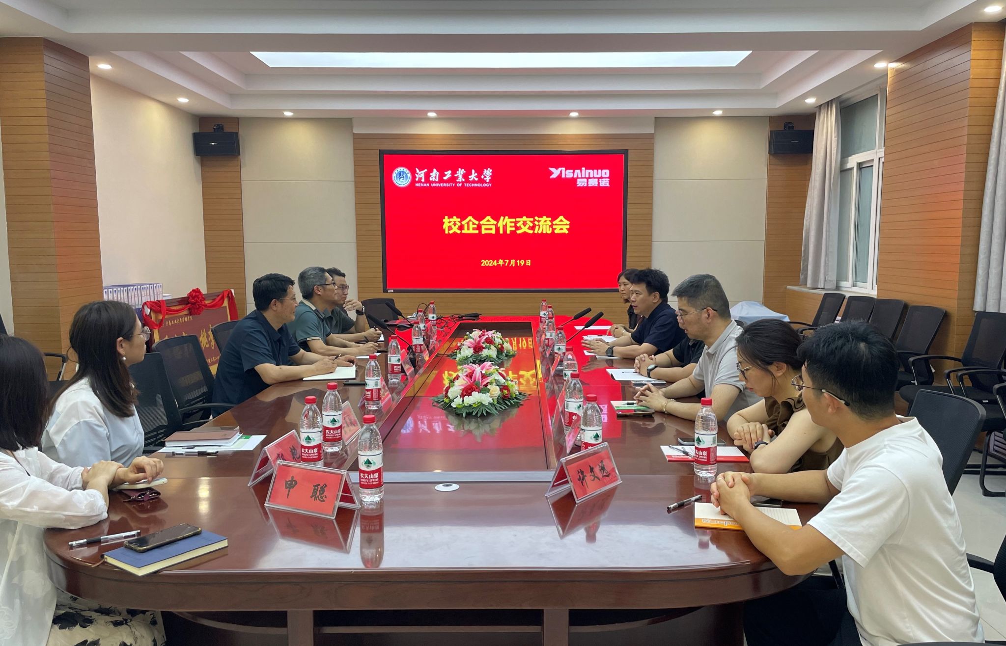 校企深度合作,共同探讨合作新模式、新路径。本次交流会邀请了郑州易赛诺数字科技有限公司(简称“易赛诺”)创始人兼总经理阮峰、副总经理于世潮、营销总监屈展、市场总监刘康等7位企业代表,捷报足球比分