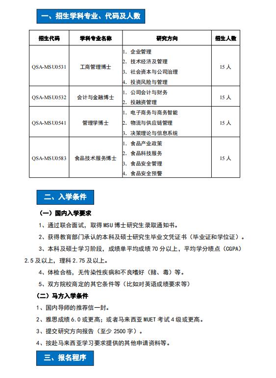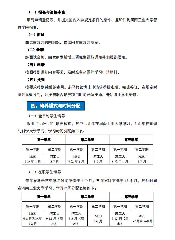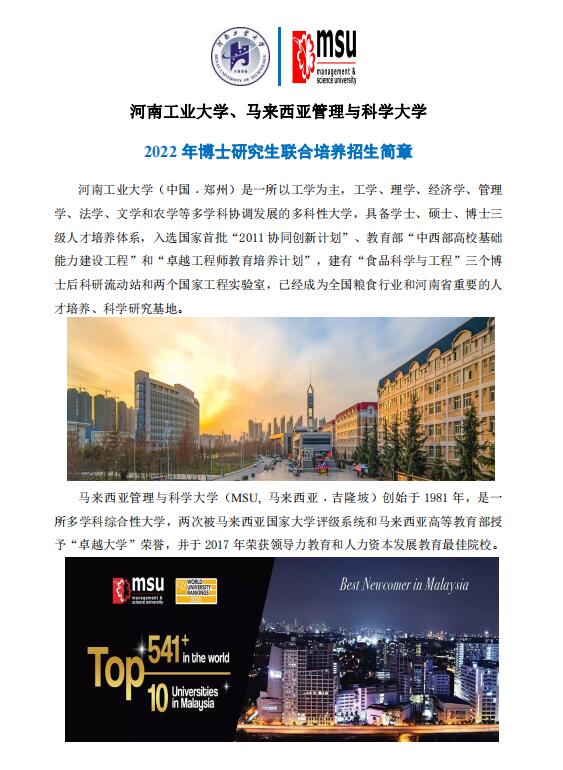 河南工业大学、马来西亚管理与科学大学2022 年博士研究生联合培养招生简章