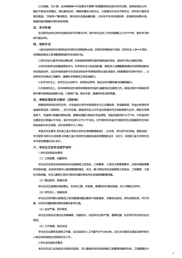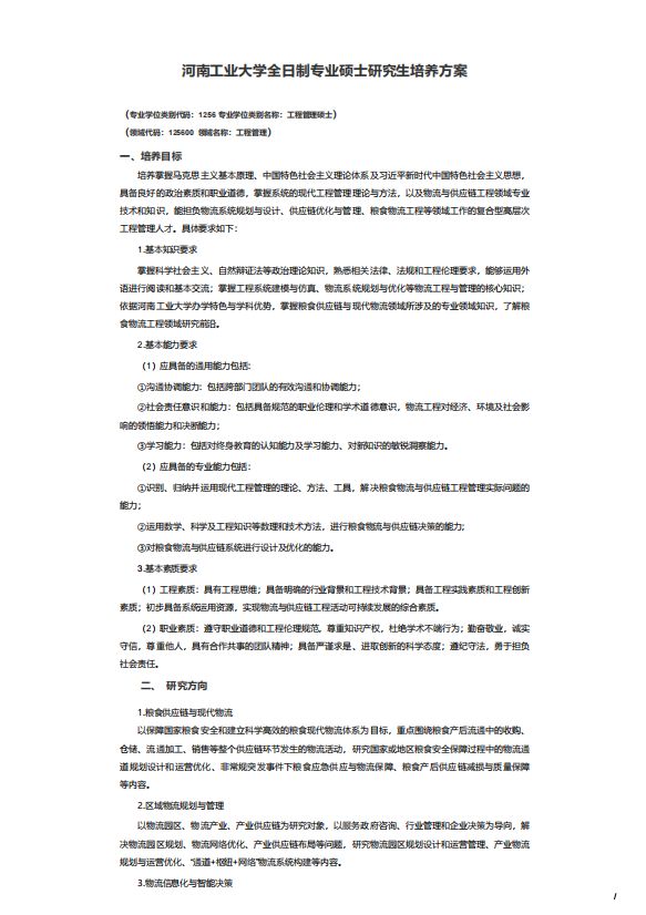 河南工业大学全日制专业硕士研究生培养方案