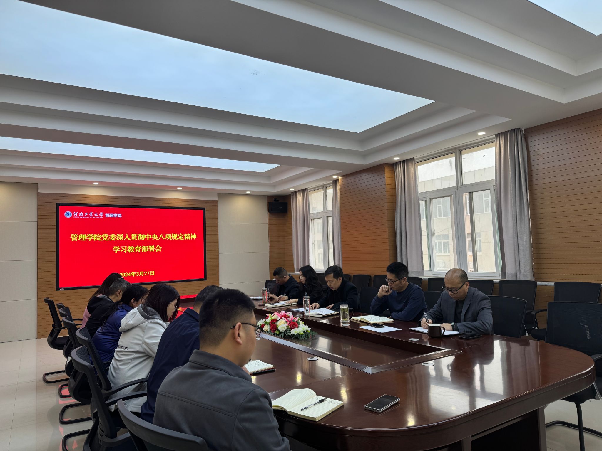 3月27日上午,捷报足球比分 在3558会议室召开深入贯彻中央八项规定精神专题学习教育部署会。传达学习上级有关会议和通知精神,贯彻落实校党委关于学习教育的工作要求,研究部署捷报足球比分 深入贯彻中央八项规定精神学习教育工作。捷报足球比分 全体党委委员、各教工党支部书记、系主任参加会议。党委书记李国仓主持会议。