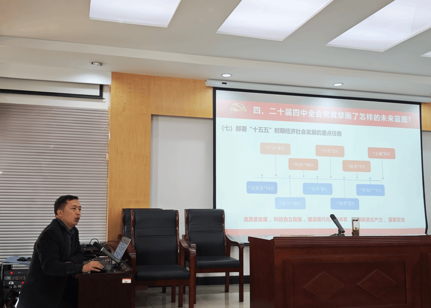 李国仓以“深悟党的二十届四中全会精神实质、勇担‘十五五’奋进新使命”为主题,围绕党的二十届四中全会内涵是什么、总书记为何如此重视“十五五”规划编制、“十四五”期间我们交出了怎样的答卷、党的二十届四中全会究竟擘画了怎样的未来蓝图以及如何贯彻落实党的二十届四中全会精神的实践路径进行了深入解读,并结合捷报足球比分