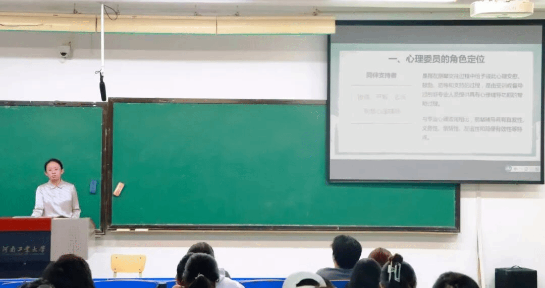 于4号教学楼322教室举办心理委员专题培训。本次培训邀请党委学生工作部学生心理健康教育中心专职教师冯邵珍担任主讲,各班级心理委员及宿舍心理信息员参加。