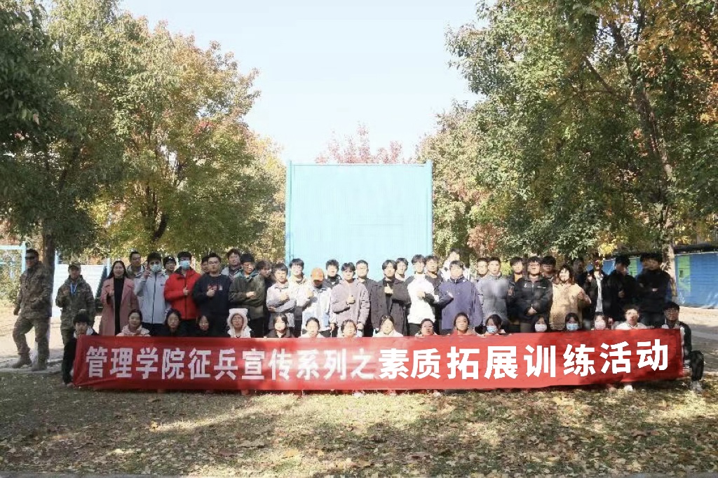 在25号楼素质拓展基地开展征兵入伍宣传之素质拓展训练活动,学工办主任王风云、辅导员肖雪川及各年级同学参加了此项活动。在素质拓展训练活动中,全体“参战”同学们身着队服、带上装备,穿梭在拓展基地旁边的树林中,精神饱满、斗志昂扬、一守一防,战斗异常精彩;同学们互相配合、积极参与,展现出了团队合作的力量。每个团队成员都发挥了自己的特长,努力为团队的胜利贡献出自己的力量。通过此次活动,同学们亲身体验了军旅活动的精彩与乐趣,体验了团队协作的重要性,增强了投身部队的热情。