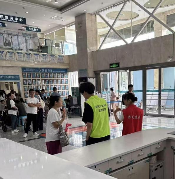 “青衿医路行”小队赴郑州市中心医院开展为期一天的义诊志愿服务活动。团队以“提高就诊效率,节约患者时间”为目标,开展“白玉兰·健康行”的暑期社会实践活动,通过帮助人们使用电子设备,为患者提供更便捷的服务,同时也为了锻炼社会实践能力。