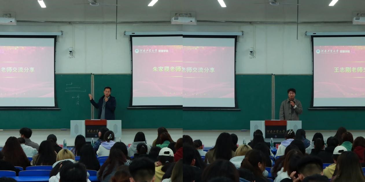 新进博士教师朱家稷、王志刚老师结合自身考研经历和专业知识,为同学们详细解读了考研政策和形势。此外,他们通过对考研、考公、就业等不同发展路径的竞争力进行了深入的比较分析,提醒同学们要充分认识到考研的优势,做好充分的准备。