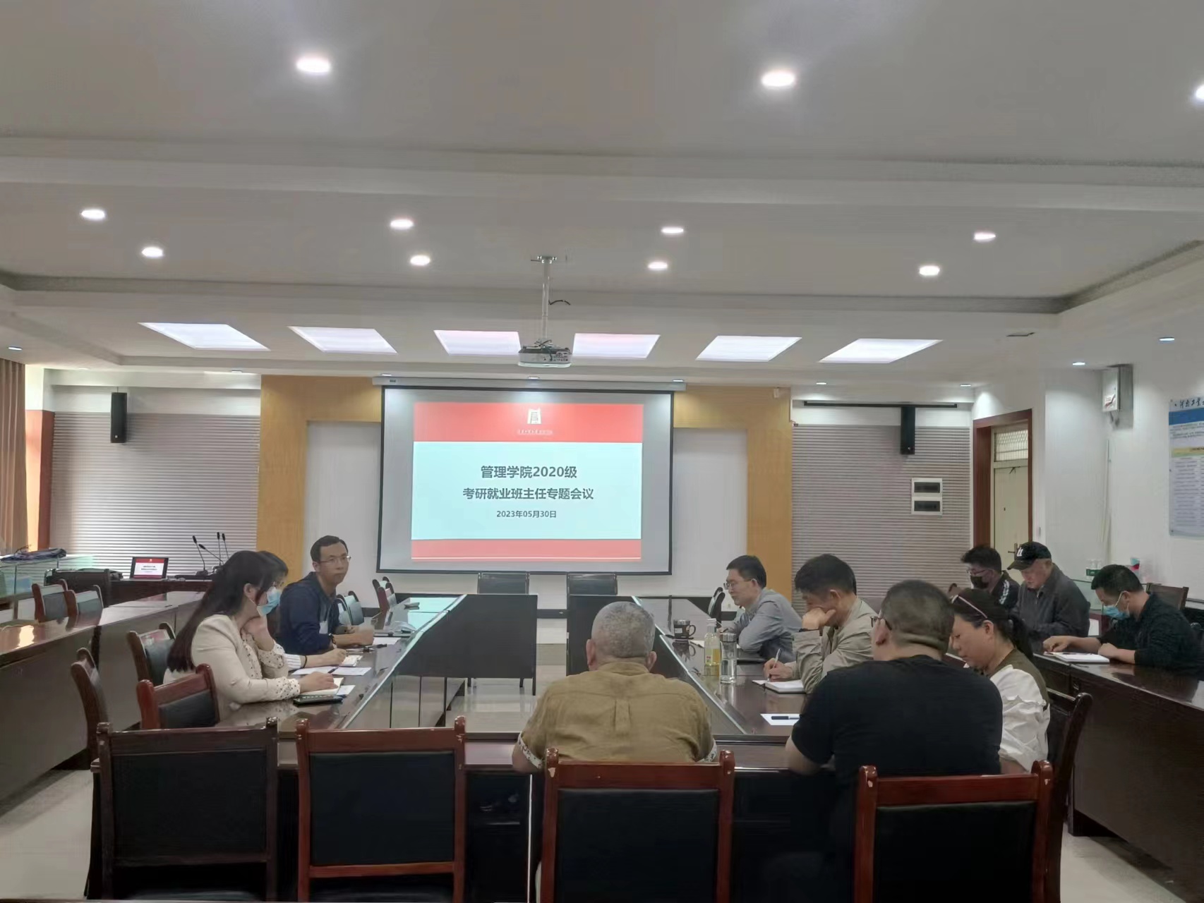 总体及各专业的考研就业情况,与在座班主任统一思想,明确目标,部署下一阶段的工作。魏涛向班主任提出三点建议:一是全面掌握班级学生考研就业情况,为学生提供分类指导帮扶;二是实时跟踪考研学生的进度,关注考研学生的思想动态、暑假留校复习和院校报考选择等;三是鼓励就业学生利用好假期实习实践,增长阅历提升能力,把握好毕业季的招聘关键节点;四是持续关注重点学生的心理健康和思想变化,做好谈心谈话和及时上报帮扶工作。