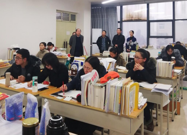 院长魏明侠、党委书记赵云平、党委副书记魏朝举、学工办主任吴春阳、团委书记吴若旻及毕业班辅导员吕文慧一行走访考研教室,看望慰问了正在备考冲刺的19届同学们,为同学们送去了冬日的温暖和关怀。