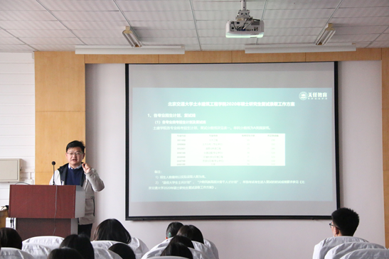 孙海宁就调剂问题为同学们做出相应解答和指导:每年考研人数猛增在一定程度上加大了考研压力,现状是校内调剂优先于校外调剂,所以建议学生优先考虑校内调剂问题。此外,他根据今年管理类学硕和专硕现状进行多方面讲解,为同学们理清了复试、面试与调剂之间的关系。